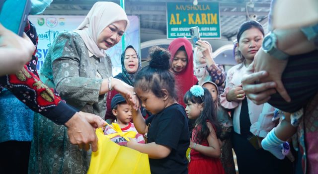 Ketua TP PKK Sumsel Feby Deru Bagikan Makanan Tambahan Bergizi di...