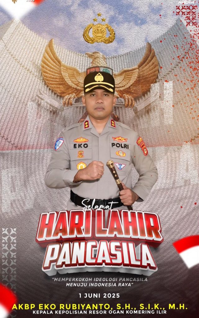 Kapolres OKI, AKBP Eko Rubiyanto, S.H., S.I.K., M.H., menyampaikan bahwa peringatan Hari Lahir Pancasila bukan sekadar kegiatan seremonial, tetapi harus menjadi momentum untuk memperkuat kembali semangat persatuan dan kesatuan bangsa.