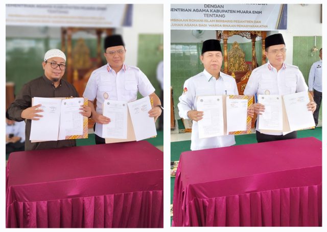 Mereka hadir untuk menyaksikan penandatanganan Perjanjian Kerjasama antara Lapas Kelas IIB Muaraenim dan Kementerian Agama Kabupaten Muaraenim, sebuah program pembinaan ruhani Islam berbasis pesantren, khusus bagi warga binaan.
