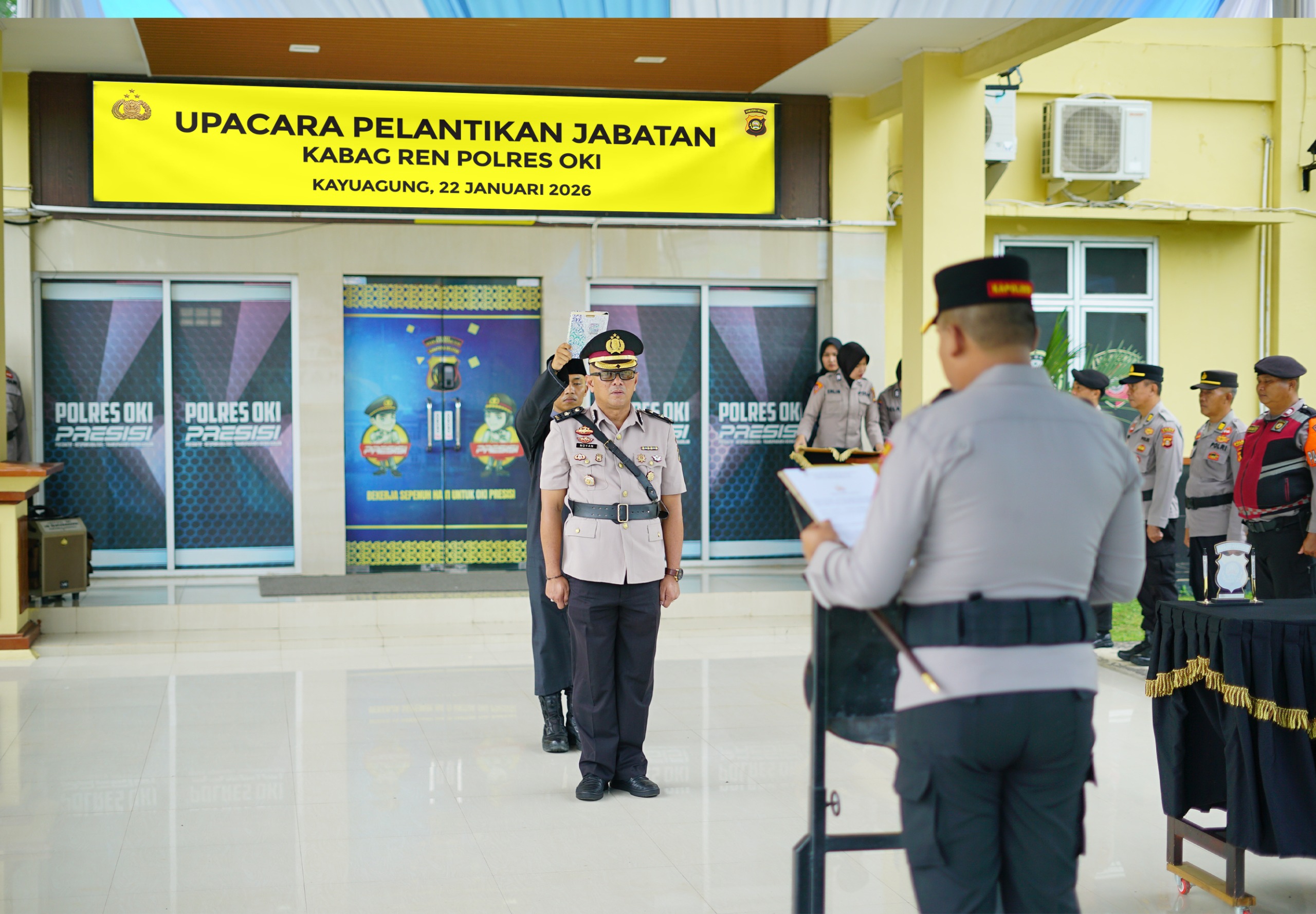 Ogan Komering Ilir —Inspirasinews com- Polres Ogan Komering Ilir (OKI) melaksanakan Upacara Pelantikan Jabatan Kepala Bagian Perencanaan (Kabag Ren) Polres OKI yang dijabat oleh Kompol Novan Dwi putra,SH, MH, pada Kamis, 22 Januari 2026, bertempat di Lobby Polres OKI.