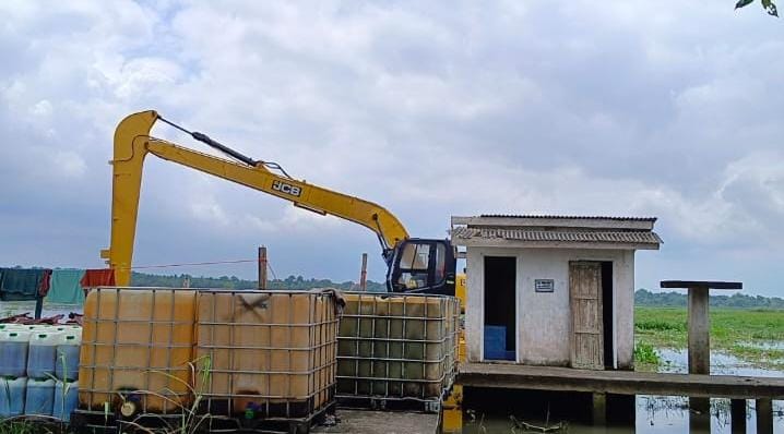 Dimana sebelumnya menurut keterangan Kades Pedamaran II, Azwar Anas, sebelumnya BBM yang ada itu diletakkan di dekat pintu Air desa Cintajaya namun berhubung air sedang pasang lalu dipindahkan ke pelataran sekolah oleh pelaksana cetak sawah tersebut.