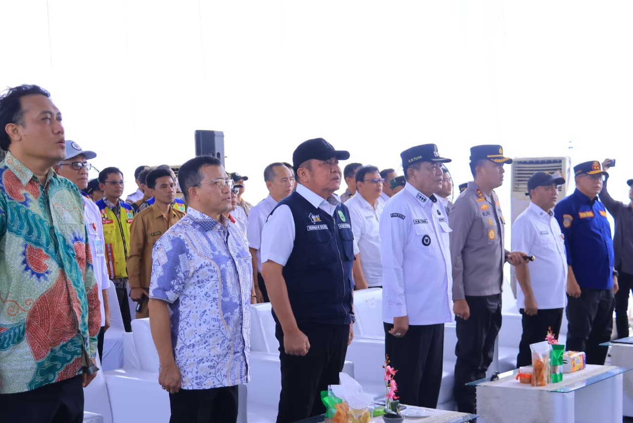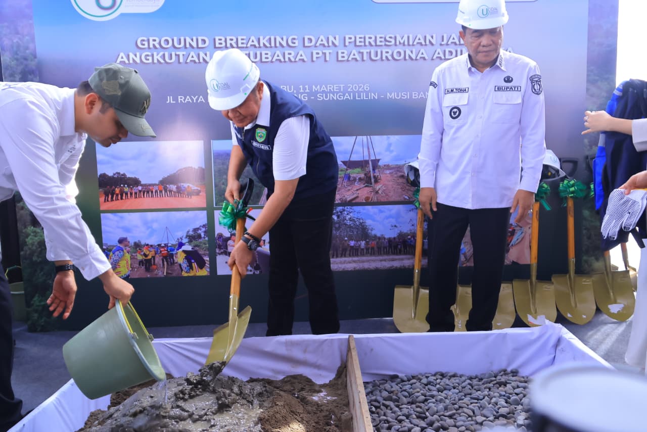 Musi Banyuasin – Inspirasinews.com-Gubernur Sumatera Selatan (Sumsel) Dr. H. Herman Deru bersama Bupati Musi Banyuasin H. M. Toha Tohet melakukan ground breaking pembangunan fly over sekaligus meresmikan jalan khusus angkutan batubara milik PT Baturona Adimulya di lokasi proyek Fly Over PT Baturona Adimulya, Jalan Palembang–Betung, Kabupaten Musi Banyuasin, Rabu (11/3/2026).