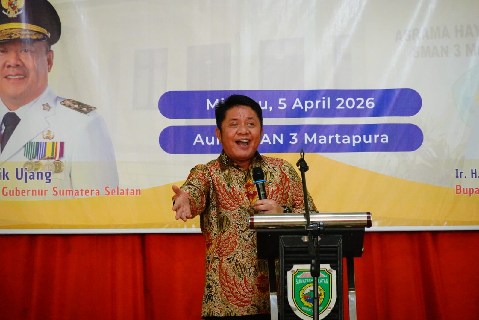 Martapura — Inspirasinews.com-Gubernur Sumatera Selatan, Dr. H. Herman Deru, bersama Bupati Ogan Komering Ulu (OKU) Timur, Lanosin, secara resmi meluncurkan sekolah berasrama berbasis religi di SMA Negeri 3 Martapura, Kabupaten OKU Timur, Minggu (5/4/2026).