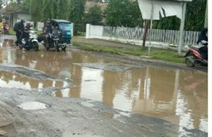 Ruas Jalan Propinsi Kota Tanjung Raja Rusak memprihatinkan.