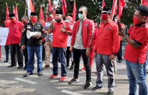 OKI-Inspirasinews.com-Pengurus DPC PDI Perjuangan bersama fraksi PDI Perjuangan DPRD Kabupaten OKI melakukan aksi damai dengan...
